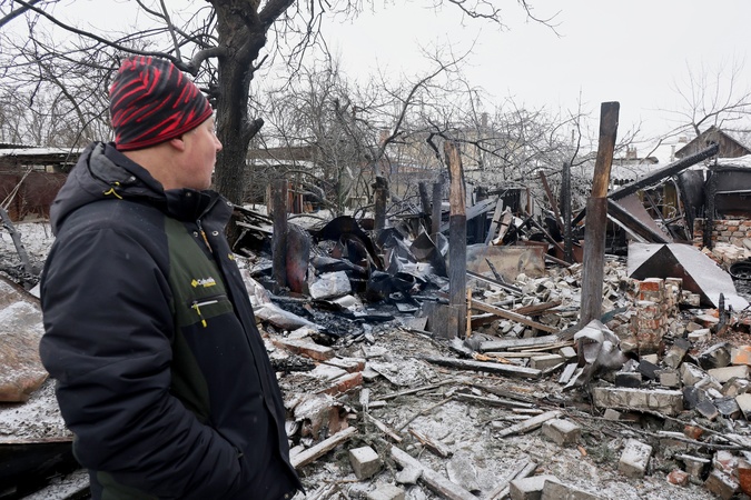 A man looks at a privately-owned house destroyed by a massive Russian drone strike, Kharkiv, Ukraine, January 24, 2026. The overnight Russian attack left 27 people injured. Residential buildings, a maternity hospital, and a dormitory were also damaged., Credit:Viacheslav Madiievskyi / Avalon