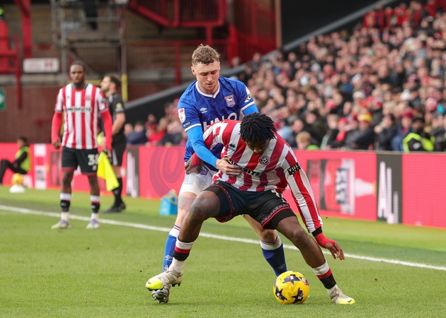 Andre Brooks of Sheffield United holds off Jack Taylor of Ipswich Town during the Sky Bet Championship match Sheffield United vs Ipswich Town at Bramall Lane, Sheffield, United Kingdom, 24th January 2026, Credit:Richard Bierton/News Images / Avalon