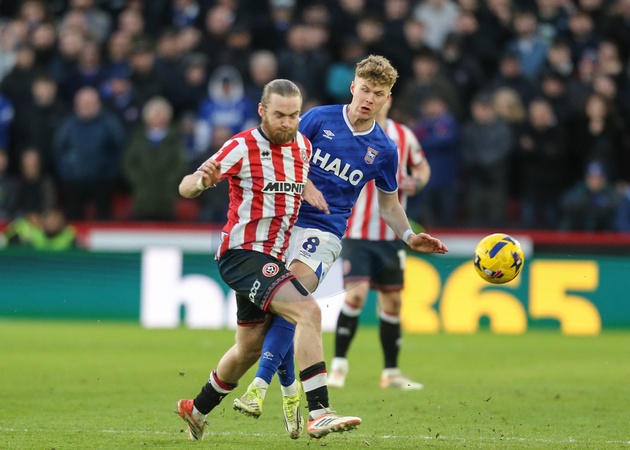 Tom Davies of Sheffield United passes the ball during the Sky Bet Championship match Sheffield United vs Ipswich Town at Bramall Lane, Sheffield, United Kingdom, 24th January 2026, Credit:Richard Bierton/News Images / Avalon