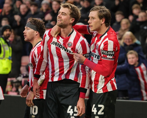 Patrick Bamford of Sheffield United celebrates his goal to make it 3-1 during the Sky Bet Championship match Sheffield United vs Ipswich Town at Bramall Lane, Sheffield, United Kingdom, 24th January 2026, Credit:Richard Bierton/News Images / Avalon