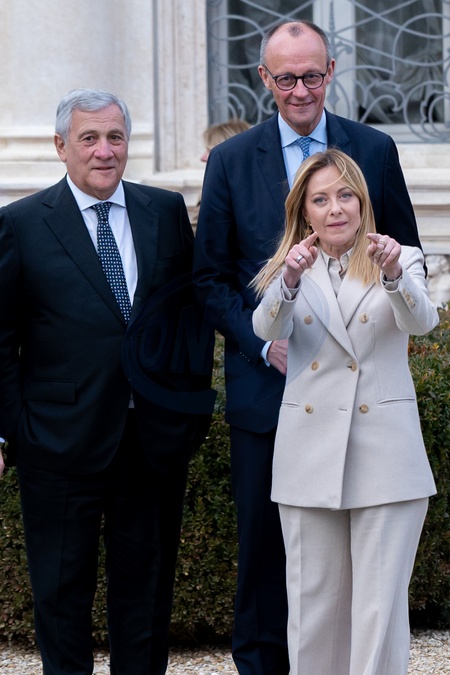Italian Prime Minister Giorgia Meloni receives the German Federal Chancellor Friedrich Merz, for the Italy-Germany Intergovernmental Summit, at Villa Doria Pamphilj in Rome, Italy on 23 January 2025., Credit:Stefano Costantino TTL / Avalon