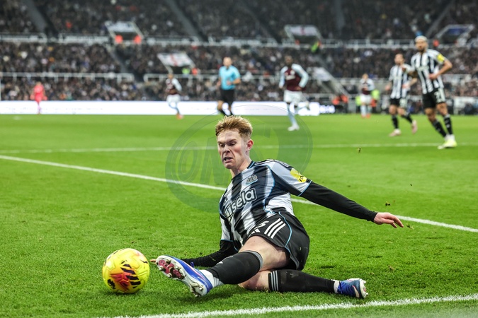 Lewis Hall of Newcastle United clears the ball during the Premier League match Newcastle United vs Aston Villa at St. James's Park, Newcastle, United Kingdom, 25th January 2026, Credit:Mark Cosgrove/News Images / Avalon