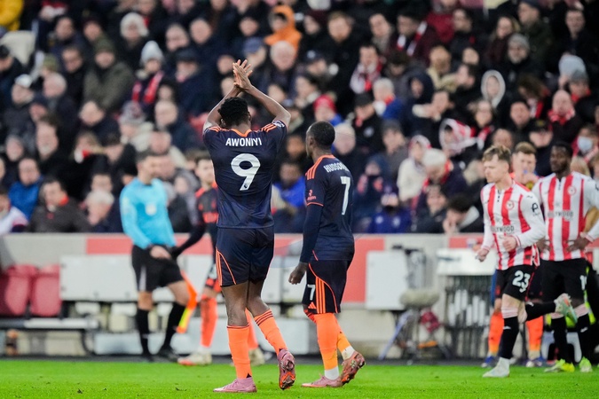 Taiwo Awoniyi of Nottingham Forest celebrates his goal to make it 0-2 during the Premier League match Brentford vs Nottingham Forest at The Gtech Community Stadium, London, United Kingdom, 25th January 2026, Credit:Maynard Manyowa/News Images / Avalon