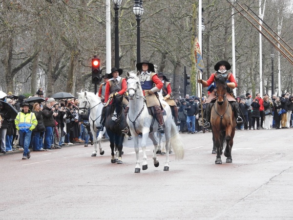 London, UK. 25 January 2026. Members of The King's Army, a Royalist re-enactment group affiliated with the English Civil War Society, take part in the annual Whitehall March commemorating the execution of King Charles I in January 1649. The procession retraces the route from St James's Palace to the Banqueting House in Whitehall, where the monarch was beheaded. The event marked its 54th anniversary., Credit:Alexander Seale / Avalon