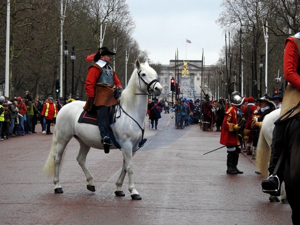 London, UK. 25 January 2026. Members of The King's Army, a Royalist re-enactment group affiliated with the English Civil War Society, take part in the annual Whitehall March commemorating the execution of King Charles I in January 1649. The procession retraces the route from St James's Palace to the Banqueting House in Whitehall, where the monarch was beheaded. The event marked its 54th anniversary., Credit:Alexander Seale / Avalon