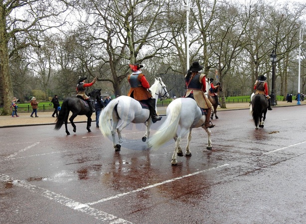 London, UK. 25 January 2026. Members of The King's Army, a Royalist re-enactment group affiliated with the English Civil War Society, take part in the annual Whitehall March commemorating the execution of King Charles I in January 1649. The procession retraces the route from St James's Palace to the Banqueting House in Whitehall, where the monarch was beheaded. The event marked its 54th anniversary., Credit:Alexander Seale / Avalon