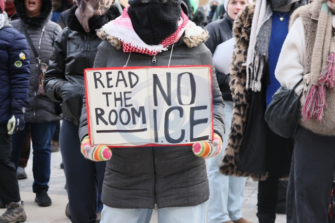 Ice Protest near Free library of Philadelphia 's Central Branch Library at 1801 Vine Street Where PA Governor Josh Shapiro Had a Book Signing on 01/24/2026, Credit:William T. Wade Jr./Photography / Avalon
