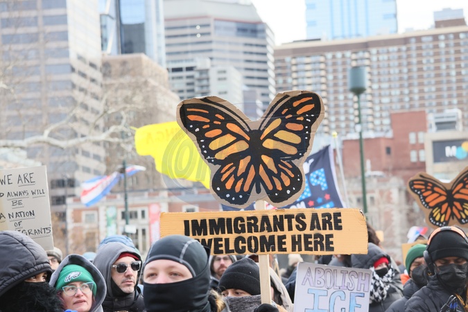 Ice Protest near Free library of Philadelphia 's Central Branch Library at 1801 Vine Street Where PA Governor Josh Shapiro Had a Book Signing on 01/24/2026, Credit:William T. Wade Jr./Photography / Avalon
