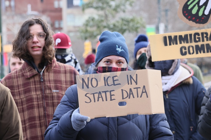 Ice Protest near Free library of Philadelphia 's Central Branch Library at 1801 Vine Street Where PA Governor Josh Shapiro Had a Book Signing on 01/24/2026, Credit:William T. Wade Jr./Photography / Avalon