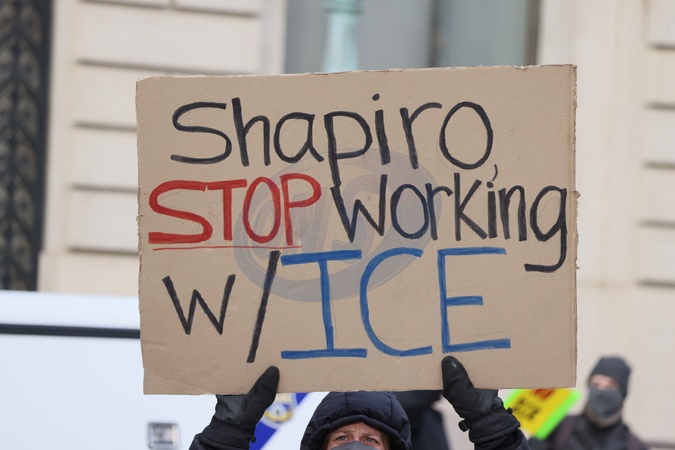 Ice Protest near Free library of Philadelphia 's Central Branch Library at 1801 Vine Street Where PA Governor Josh Shapiro Had a Book Signing on 01/24/2026, Credit:William T. Wade Jr./Photography / Avalon