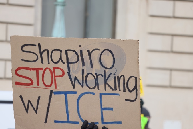 Ice Protest near Free library of Philadelphia 's Central Branch Library at 1801 Vine Street Where PA Governor Josh Shapiro Had a Book Signing on 01/24/2026, Credit:William T. Wade Jr./Photography / Avalon