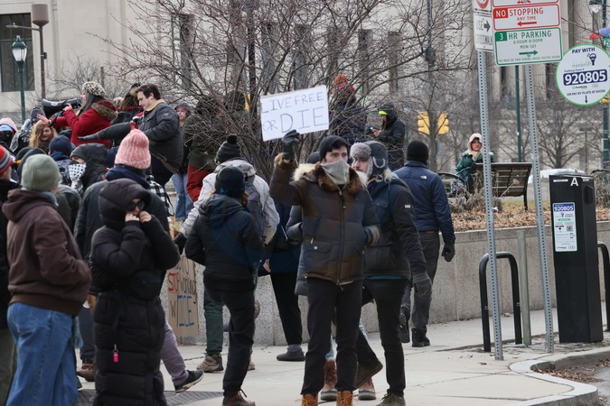 Ice Protest near Free library of Philadelphia 's Central Branch Library at 1801 Vine Street Where PA Governor Josh Shapiro Had a Book Signing on 01/24/2026, Credit:William T. Wade Jr./Photography / Avalon