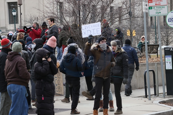 Ice Protest near Free library of Philadelphia 's Central Branch Library at 1801 Vine Street Where PA Governor Josh Shapiro Had a Book Signing on 01/24/2026, Credit:William T. Wade Jr./Photography / Avalon