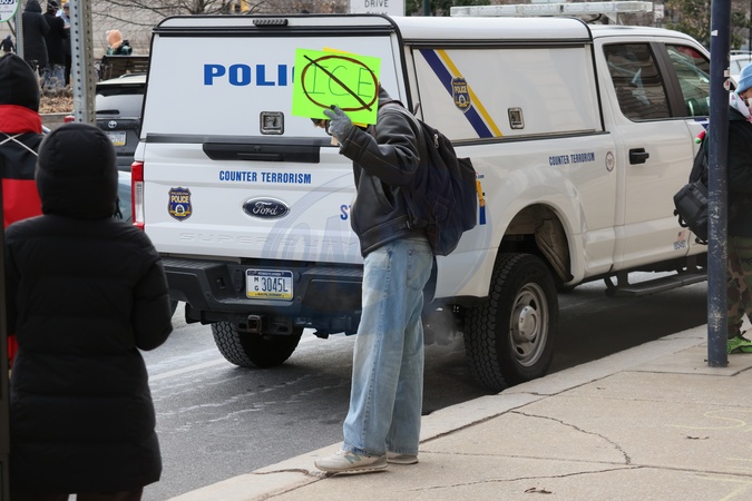 Ice Protest near Free library of Philadelphia 's Central Branch Library at 1801 Vine Street Where PA Governor Josh Shapiro Had a Book Signing on 01/24/2026, Credit:William T. Wade Jr./Photography / Avalon