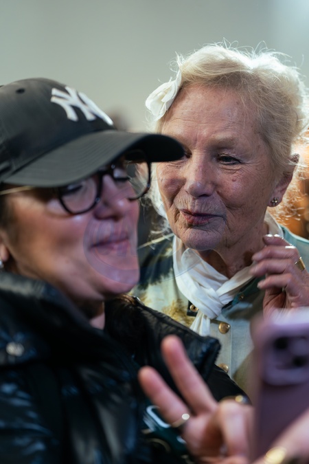 Fashion designer Agnès Troublé with a fan during the Agnès b. Menswear Fall/Winter 2026-2027 Presentation as part of Paris Fashion Week on January 25, 2026 in Paris, France., Credit:Lounis Tiar / Avalon