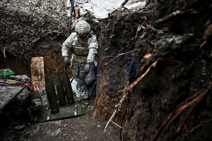 A soldier from the Striletskyi special forces police battalion of the National Police in the Zaporizhzhia region prepares 155 mm shells for a 2S22 Bohdana self-propelled howitzer to fire at Russian manpower and equipment in the Pokrovsky direction, Donetsk region, Ukraine, January 23, 2026., Credit:Dmytro Smolienko / Avalon
