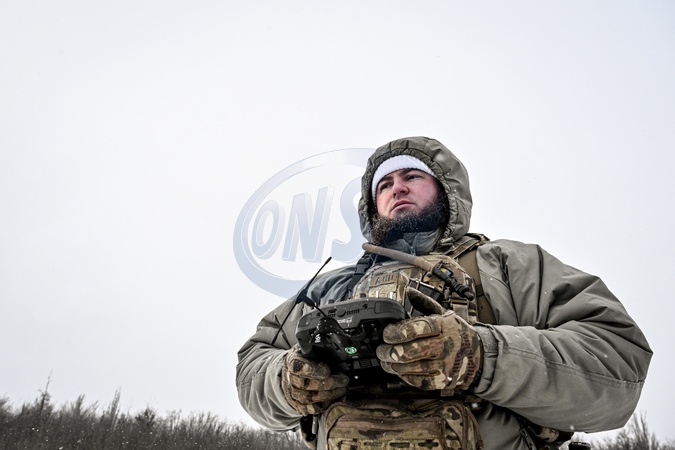 A soldier from a UAS crew of the Striletskyi special forces police battalion of the National Police in Zaporizhzhia region controls the launch of a Ukrainian GARA drone during a combat mission in the Pokrovsky direction, Donetsk region, Ukraine, January 23, 2026., Credit:Dmytro Smolienko / Avalon