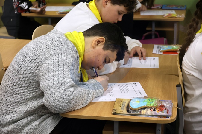 A student writes during a lesson in a classroom of an underground school at one of the metro stations in Kharkiv, Ukraine, on January 26, 2026. The metro school provides a safe learning environment for students as the city remains under the threat of ongoing Russian attacks, Credit:Viacheslav Madiievskyi / Avalon