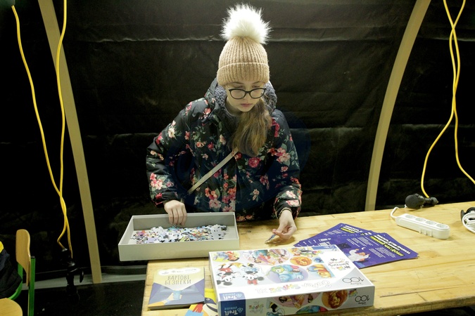 A girl puts puzzles together at a mobile warming center deployed in the Desnianskyi district of Kyiv, Ukraine, on January 26, 2026. The center was set up due to disruptions in electricity and heating supply following Russian attacks on Ukraine's energy infrastructure, Credit:Hennadii Minchenko / Avalon