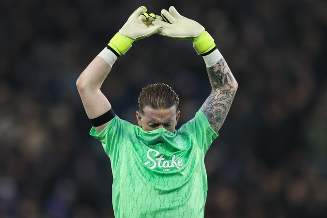 Everton goalkeeper Jordan Pickford reacts during the Premier League match Everton vs Leeds United at Hill Dickinson Stadium, Liverpool, United Kingdom, 26th January 2026, Credit:Ae Cosgrove/News Images / Avalon