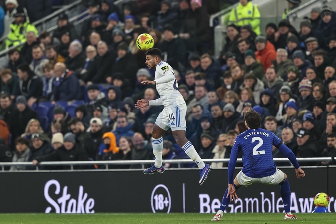 Jayden Bogle of Leeds United jumps up to win the high ball during the Premier League match Everton vs Leeds United at Hill Dickinson Stadium, Liverpool, United Kingdom, 26th January 2026, Credit:Ae Cosgrove/News Images / Avalon