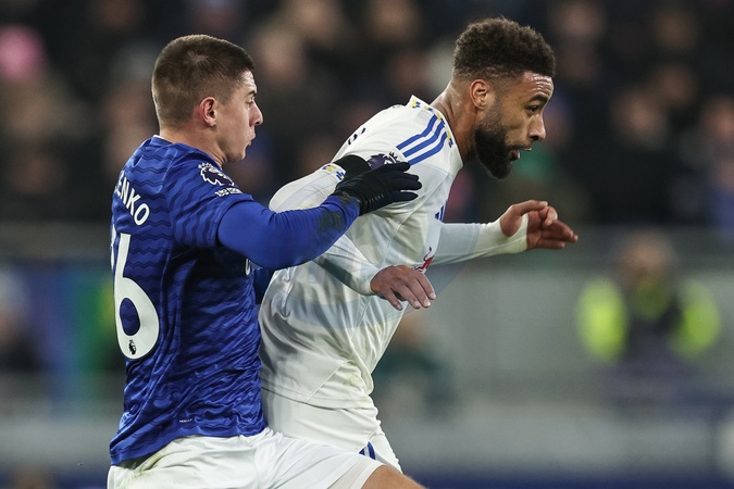 Jayden Bogle of Leeds United is fouled by Vitaliy Mykolenko of Everton during the Premier League match Everton vs Leeds United at Hill Dickinson Stadium, Liverpool, United Kingdom, 26th January 2026, Credit:Ae Cosgrove/News Images / Avalon