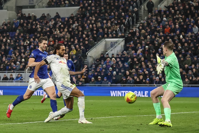 Everton goalkeeper Jordan Pickford blocks a shot off Dominic Calvert-Lewin of Leeds United during the Premier League match Everton vs Leeds United at Hill Dickinson Stadium, Liverpool, United Kingdom, 26th January 2026, Credit:Ae Cosgrove/News Images / Avalon