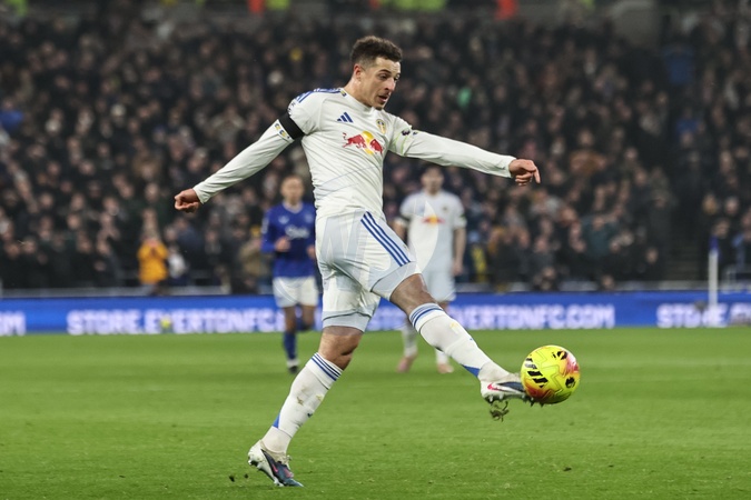 Ethan Ampadu of Leeds United shoots on goal during the Premier League match Everton vs Leeds United at Hill Dickinson Stadium, Liverpool, United Kingdom, 26th January 2026, Credit:Ae Cosgrove/News Images / Avalon