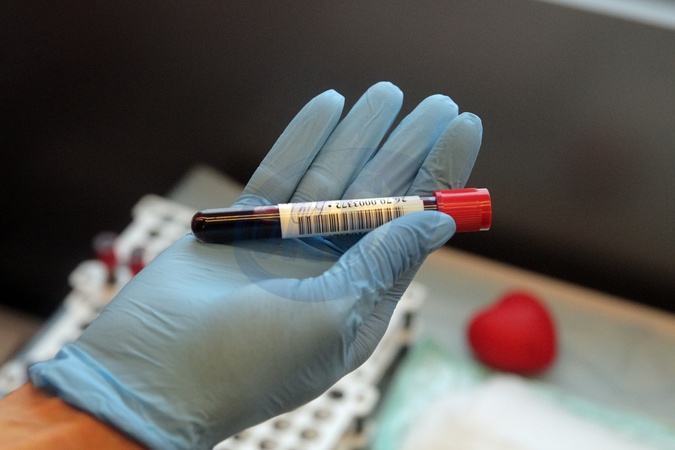 A medical worker demonstrates a test tube with blood during an open blood donation campaign at the Teplokrovni mobile donor hub outside the Desnianskyi District State Administration building in Kyiv, Ukraine, on January 23, 2026, Credit:Hennadii Minchenko / Avalon
