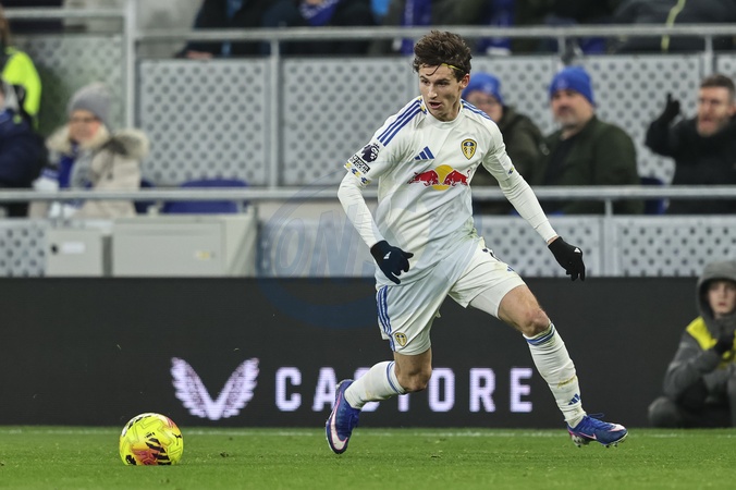 Brenden Aaronson of Leeds United breaks with the ball during the Premier League match Everton vs Leeds United at Hill Dickinson Stadium, Liverpool, United Kingdom, 26th January 2026, Credit:Ae Cosgrove/News Images / Avalon
