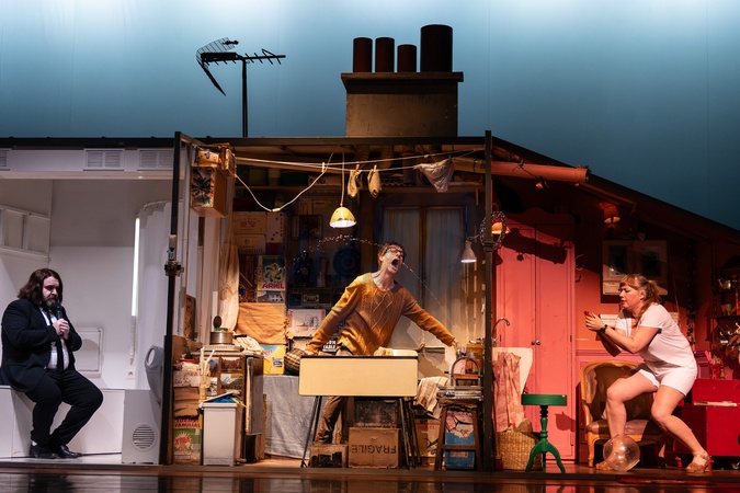 The cast of Fish Bowl, Pierre Guillois with Agathe L'Huillier and Olivier Martin-Salvan, perform at Sadler Wells' Peacock Theatre as part of MimeLondon, 26th January 2026, Credit:Connie Burke / Avalon