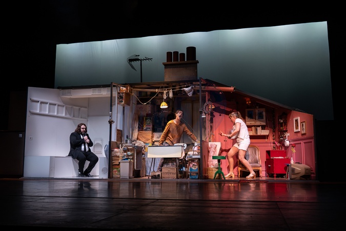 The cast of Fish Bowl, Pierre Guillois with Agathe L'Huillier and Olivier Martin-Salvan, perform at Sadler Wells' Peacock Theatre as part of MimeLondon, 26th January 2026, Credit:Connie Burke / Avalon