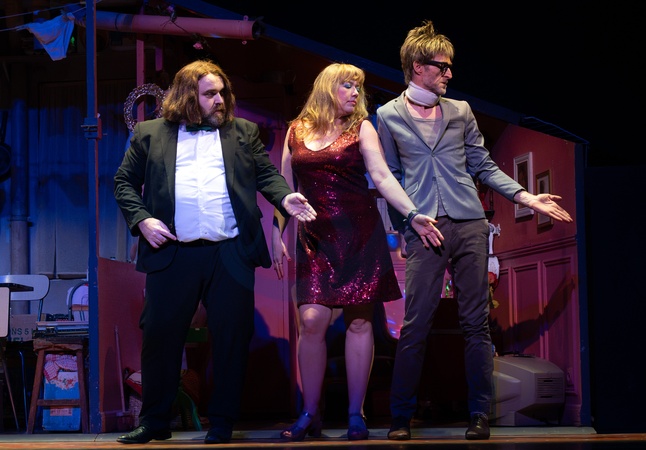 The cast of Fish Bowl, Pierre Guillois with Agathe L'Huillier and Olivier Martin-Salvan, perform at Sadler Wells' Peacock Theatre as part of MimeLondon, 26th January 2026, Credit:Connie Burke / Avalon