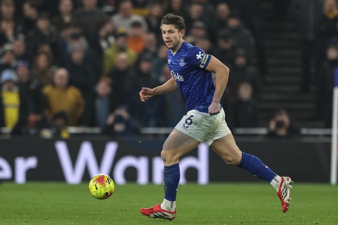 James Tarkowski of Everton breaks with the ball during the Premier League match Everton vs Leeds United at Hill Dickinson Stadium, Liverpool, United Kingdom, 26th January 2026, Credit:Ae Cosgrove/News Images / Avalon