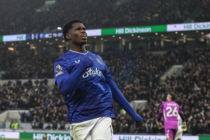 Thierno Barry of Everton celebrates his goal to make it 1-1 during the Premier League match Everton vs Leeds United at Hill Dickinson Stadium, Liverpool, United Kingdom, 26th January 2026, Credit:Ae Cosgrove/News Images / Avalon
