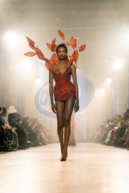 A model walks the runway durinh the Rahul Mishra Haute Couture Week Spring/Summer 2026 show as part of the Paris Fashion Week., Credit:Lounis Tiar / Avalon