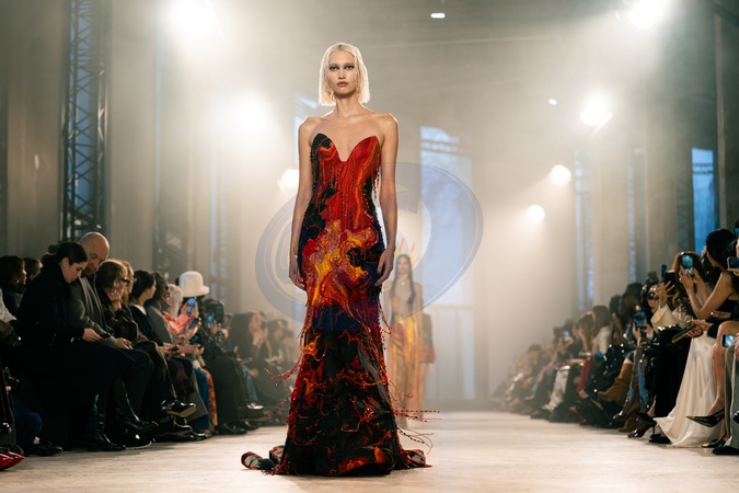 A model walks the runway durinh the Rahul Mishra Haute Couture Week Spring/Summer 2026 show as part of the Paris Fashion Week., Credit:Lounis Tiar / Avalon