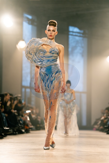 A model walks the runway durinh the Rahul Mishra Haute Couture Week Spring/Summer 2026 show as part of the Paris Fashion Week., Credit:Lounis Tiar / Avalon