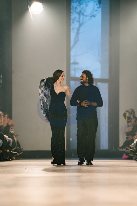 Coco Rocha And Indian Designer Rahul Mishra the runway durinh the Rahul Mishra Haute Couture Week Spring/Summer 2026 show as part of the Paris Fashion Week., Credit:Lounis Tiar / Avalon