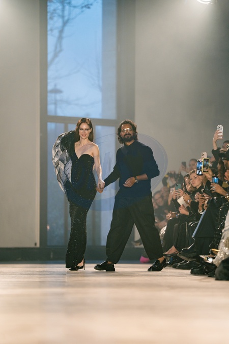 Coco Rocha And Indian Designer Rahul Mishra the runway durinh the Rahul Mishra Haute Couture Week Spring/Summer 2026 show as part of the Paris Fashion Week., Credit:Lounis Tiar / Avalon