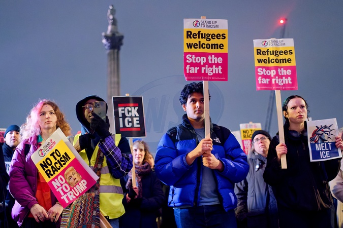Solidarity with Minneapolis protest. Trafalgar Square. London. 26th January 2026.