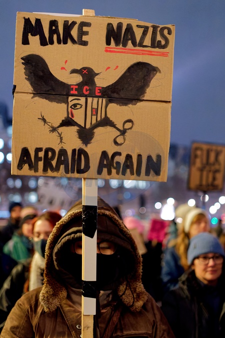 Solidarity with Minneapolis protest. Trafalgar Square. London. 26th January 2026.