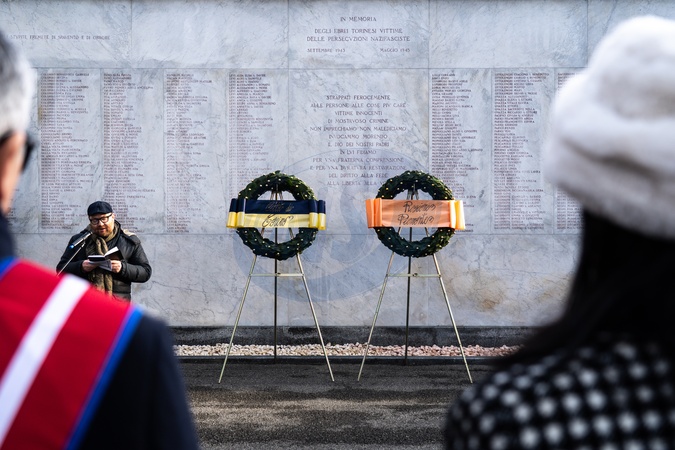 January 27, 2026, Turin, Monumental Cemetery. Holocaust Remembrance Day. Institutional ceremony honoring the gravestones of the fallen, dedicated to the memory of the extermination of the Jewish people, military internees, and all those deported to Nazi camps., Credit:Selene Daniele / Avalon