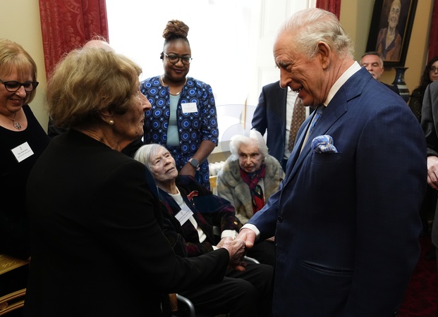 King Charles III speaks with Holocaust survivor Susan Pollack during a reception at Buckingham Palace in London to mark Holocaust Memorial Day. Picture date: Tuesday January 27, 2026., Credit:Aaron Chown / Avalon