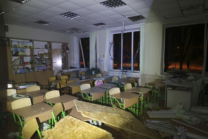 Windows blown out by a blast wave in a classroom of a school building partially destroyed by Russian shelling in Kharkiv, Ukraine, on January 26, 2026. On Monday evening, January 26, the city suffered a combined Russian attack. The strike injured three people and damaged two schools, apartment buildings and an energy infrastructure facility in the Industrialnyi district, causing electricity outages and the introduction of emergency blackout schedules in the region, Credit:Viacheslav Madiievskyi / Avalon