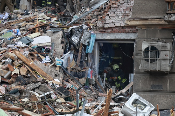 Emergency responders and utility workers dismantle rubble by hand at a residential building damaged by a Russian drone strike that caused apartment collapses from the fourth to the second floors in Odesa, Ukraine, on January 27, 2026. An overnight Russian drone attack on January 27 left Odesa with significant infrastructure damage. Authorities reported 22 affected people, 14 of whom sustained minor injuries. Search and rescue work continues at the strike sites, Credit:Nina Liashonok / Avalon