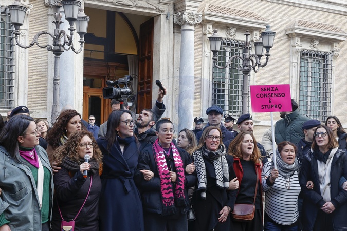 Feminist organizations and anti-violence centers protested in front of the Senate against the amendment to the bill currently under discussion on sexual violence and consent. Pictured are Senators Valeria Valente and Ilaria Cucchi with the protesters. Rome, Italy 27 January 2026, Credit:Richard De Luca / Avalon