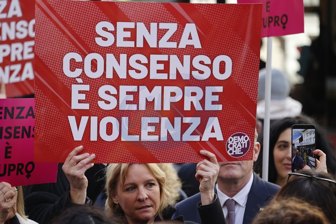Feminist organizations and anti-violence centers protested in front of the Senate against the amendment to the bill currently under discussion on sexual violence and consent. Rome, Italy 27 January 2026, Credit:Richard De Luca / Avalon