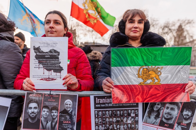 Parliament Square, London, UK. 27th January 2026.Protesters and members of the Iranian community in London continue their weekly protest opposite the Houses of Parliament, calling for the UK government to place the Islamic Revolutionary Guard Corps (IRGC) on Britain's terrorist list.The activists in Iran, of which an estimated 50,000 + have been killed in the last 3 weeks, for protesting against the Islamic Republic regime and chanting for the return of exiled Crown Prince Reza Pahlavi, the last Shah's eldest son., Credit:Photo by Amanda Rose / Avalon