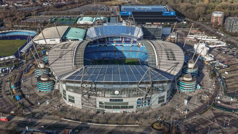 An aerial view of The City of Manchester Stadium during the UEFA Champions League match Manchester City vs Galatasaray at The City of Manchester Stadium, Manchester, United Kingdom, 28th January 2026, Credit:Mark Cosgrove/News Images / Avalon